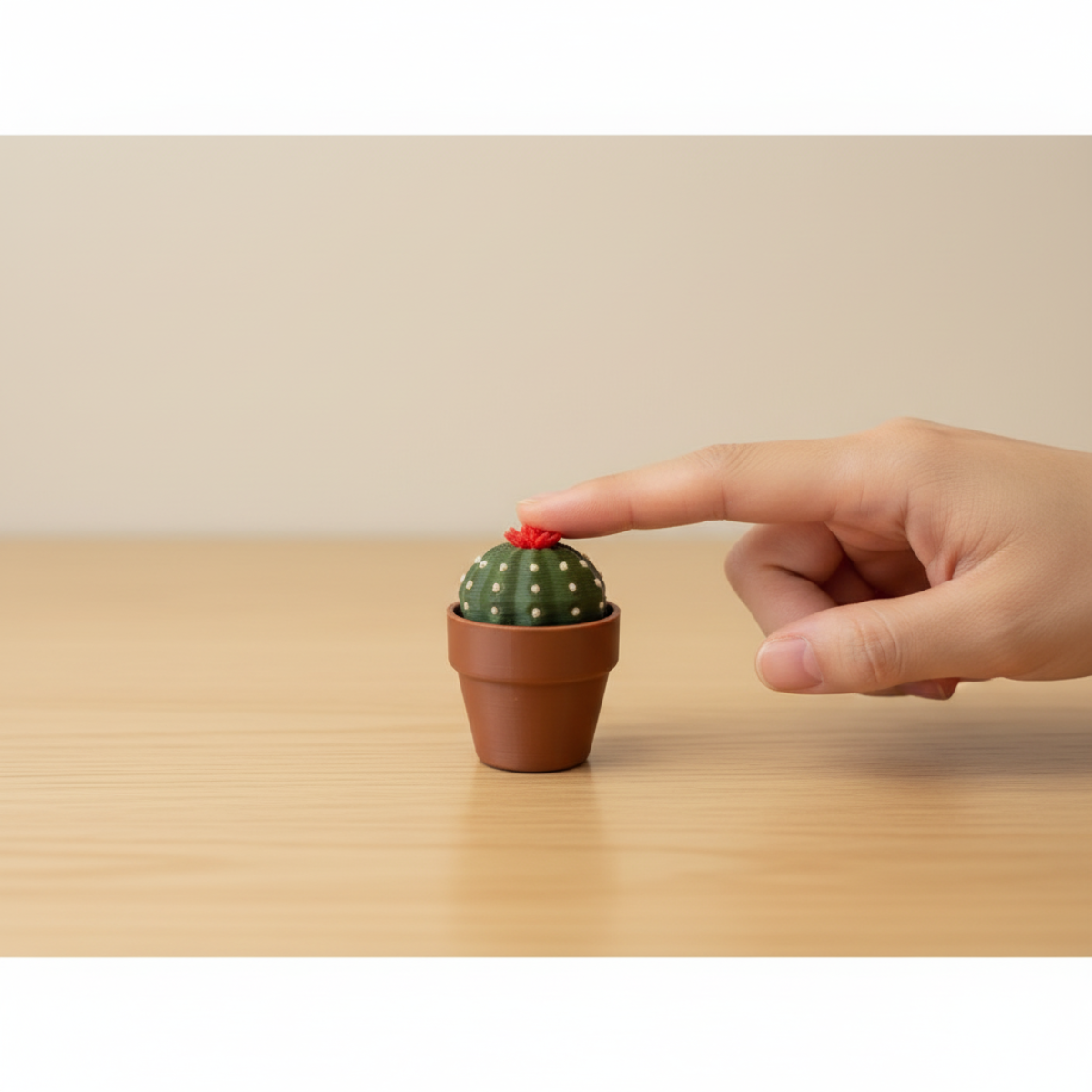 🌺 Χειροποίητο διακοσμητικό κάκτος από 3D εκτύπωση, με εντυπωσιακό κόκκινο λουλουδάκι στην κορυφή.
