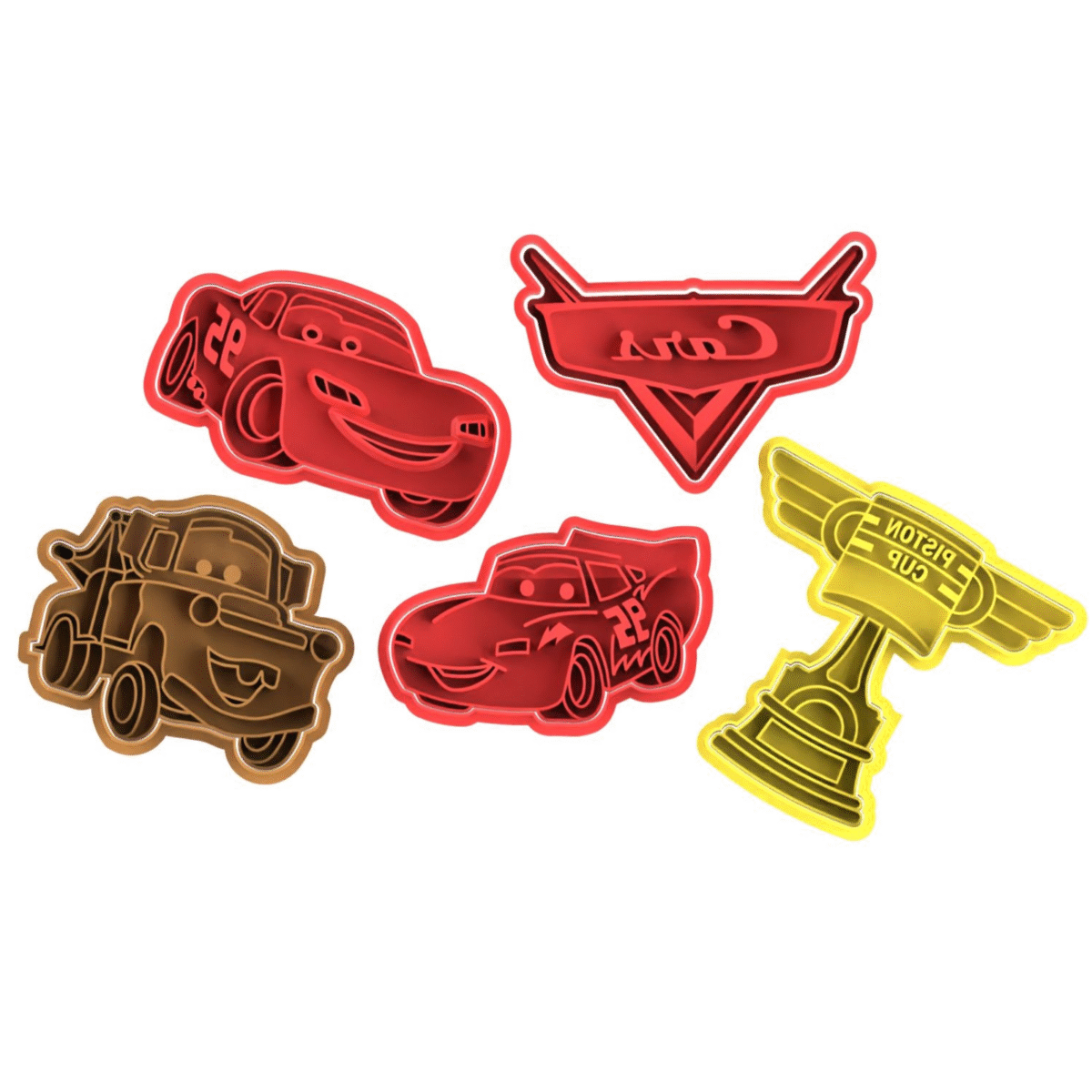 Σετ cookie cutters εμπνευσμένο από το παιδικό καρτούν Cars, ιδανικό για παιδικά πάρτυ, δραστηριότητες ή δημιουργίες με ζύμη και πηλό. Κατάλληλο για μπισκότα, ζαχαρόπαστα και παιχνίδι.