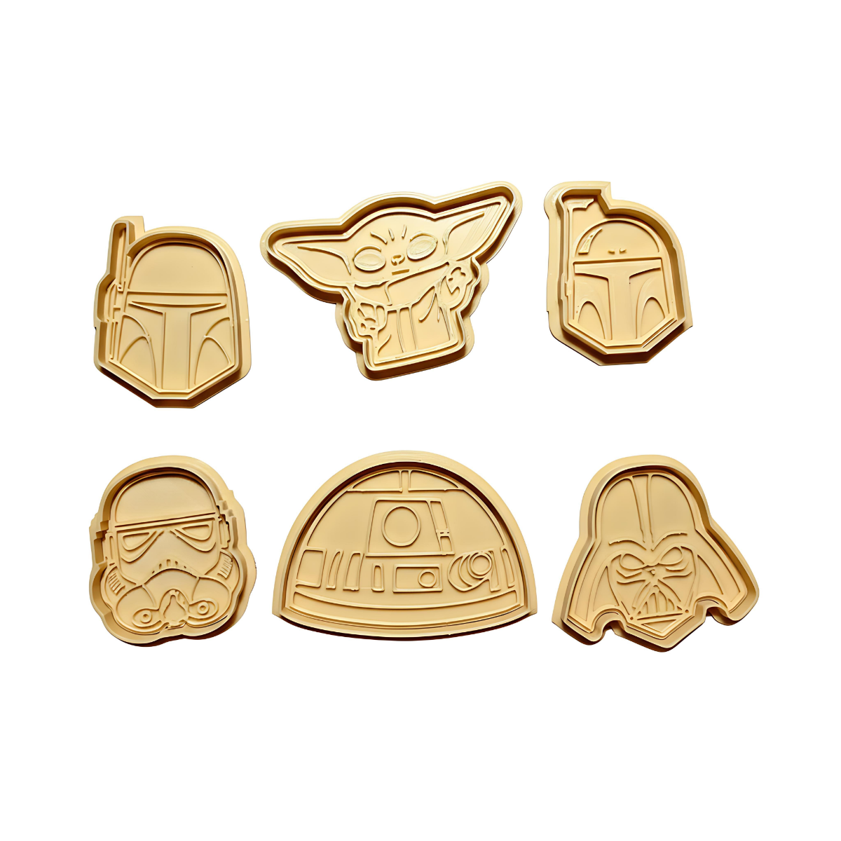 Μικρό σετ cookie cutters εμπνευσμένο από το σύμπαν Star Wars – ιδανικό για παιδικά πάρτυ, μπισκότα, ζαχαρόπαστα ή θεματικές κατασκευές.