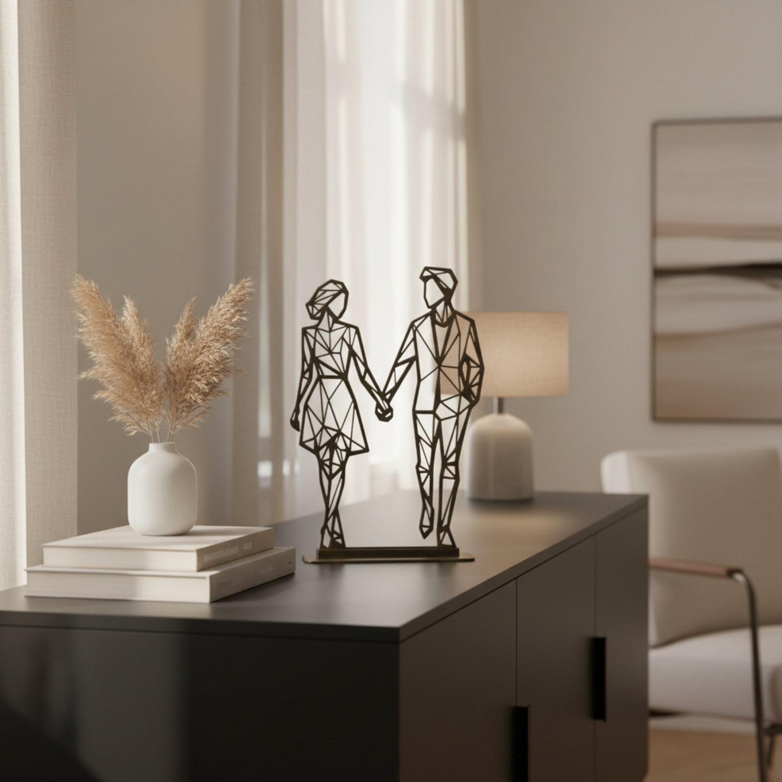 🤍 Κομψό διακοσμητικό γλυπτό με ζευγάρι σε low poly geometric στυλ που κρατιέται χέρι-χέρι σε βάση.