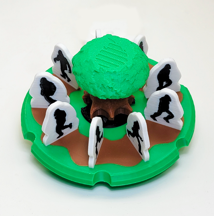 🌀 Ένα εντυπωσιακό 3D printed spinner με θέμα τον Bigfoot, σχεδιασμένο σαν μικρό δάσος με φιγούρες περιμετρικά.