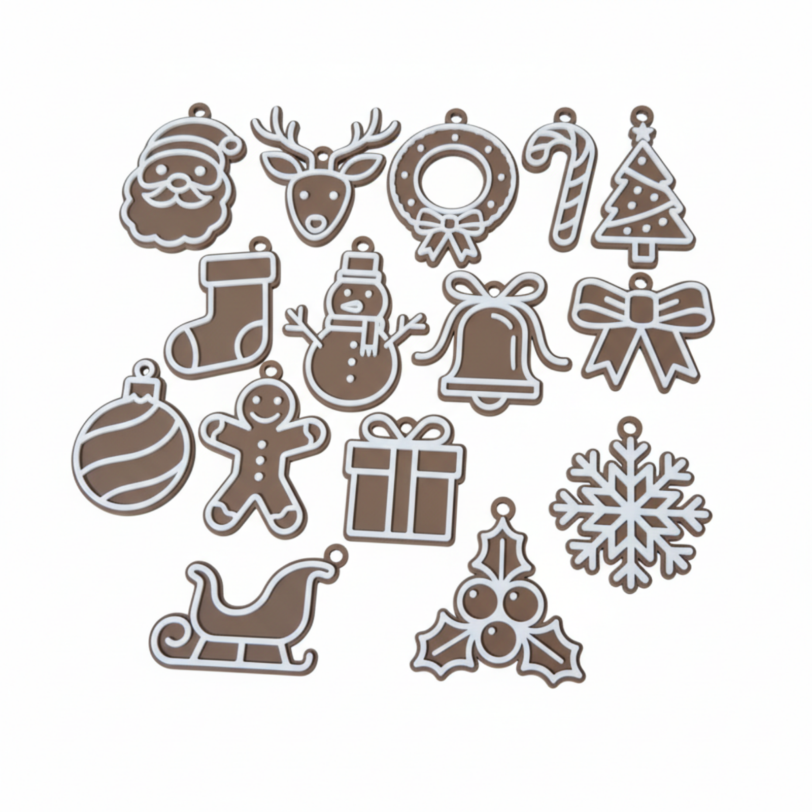 stolidia set 15 xristougenna dentro agios vasilis tarantos xionantrwpos elkithro nifada kampana dentro gingerbread dwro στολίδια σετ χριστούγεννα δέντρο Άγιος Βασίλης τάρανδος χιονάνθρωπος έλκηθρο νιφάδα καμπάνα δώρο 3d εκτυπωμένο xmas ornaments