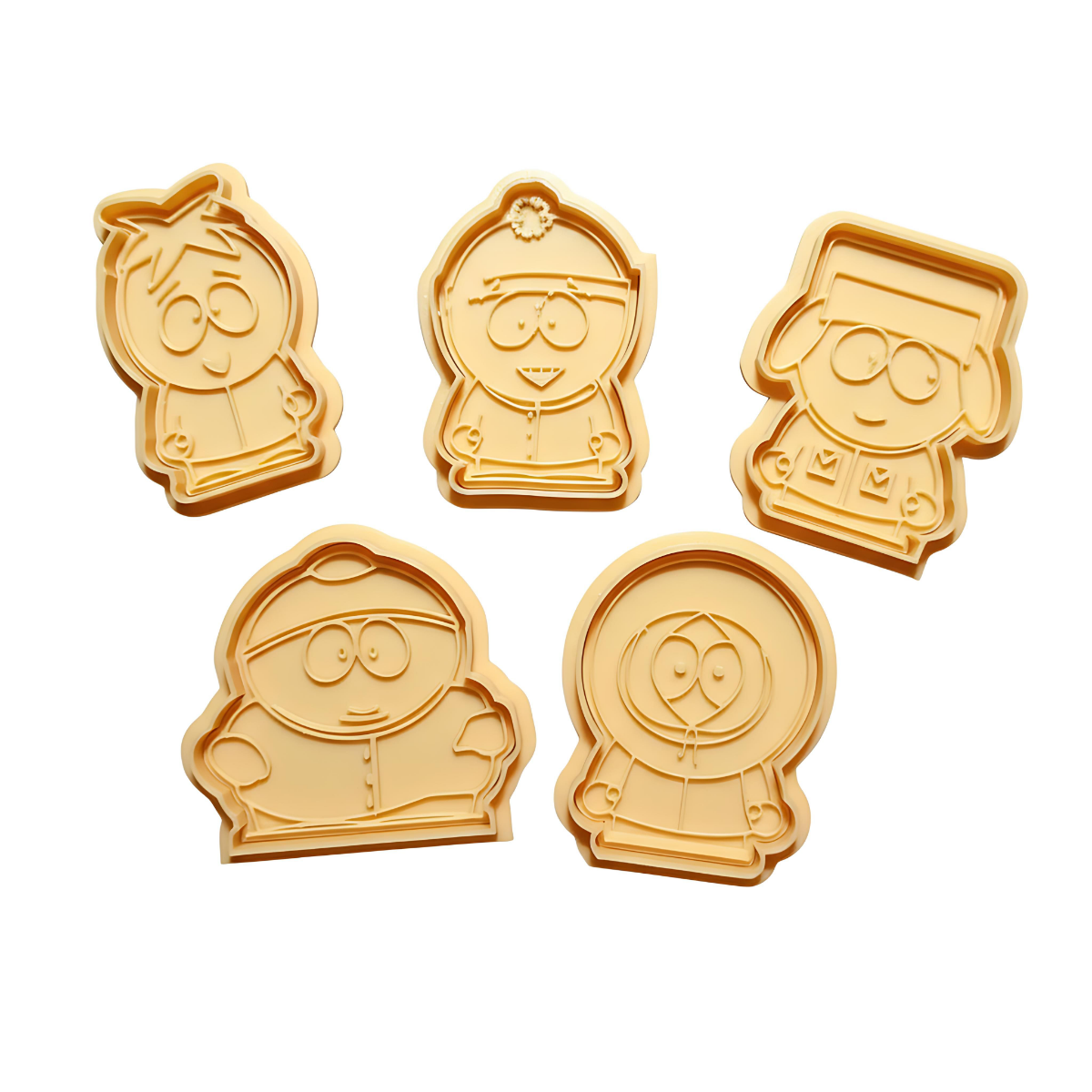 Σετ cookie cutters εμπνευσμένο από το κλασικό καρτούν South Park, ιδανικό για θεματικά πάρτυ, μπισκότα, ζαχαρόπαστα, πηλό ή δημιουργικές δραστηριότητες.